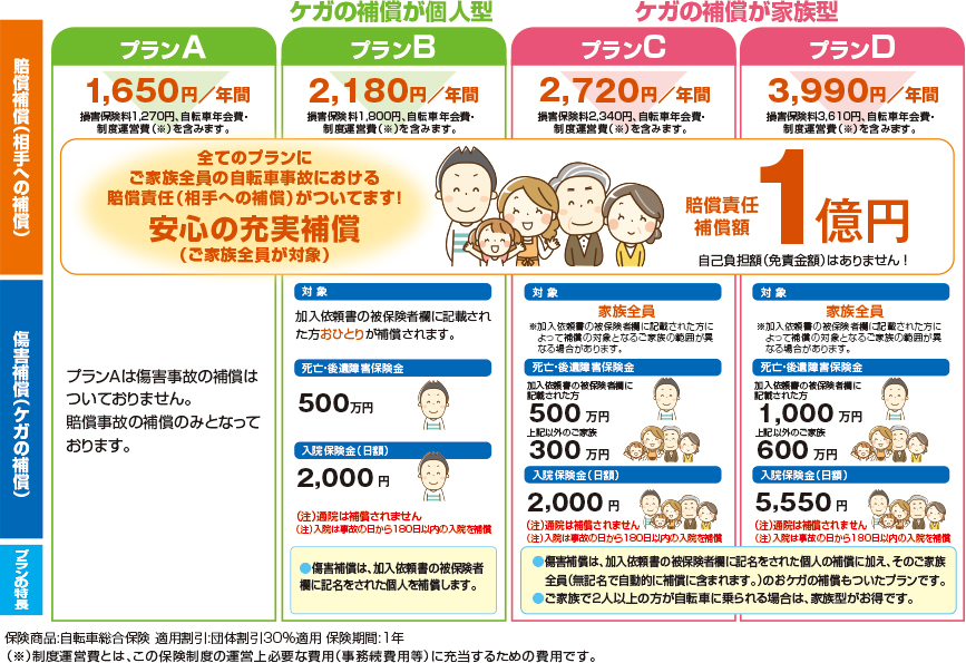 サイクルメンバーズの皆さまに加入しやすい自転車保険をご用意しました。自転車事故に関するトラブルから会員とご家族をお守りします。